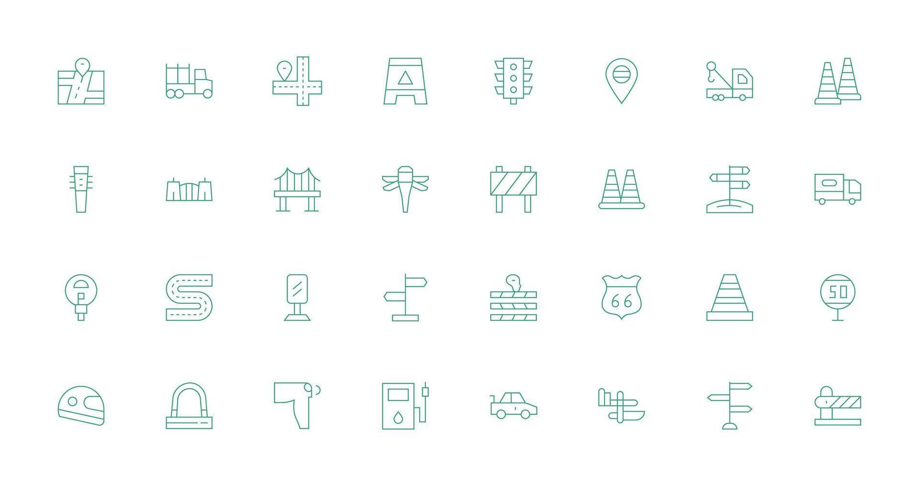Road featuring 32 Icons in Thin Line Design Neatly Designed Icons for Web Platforms vector