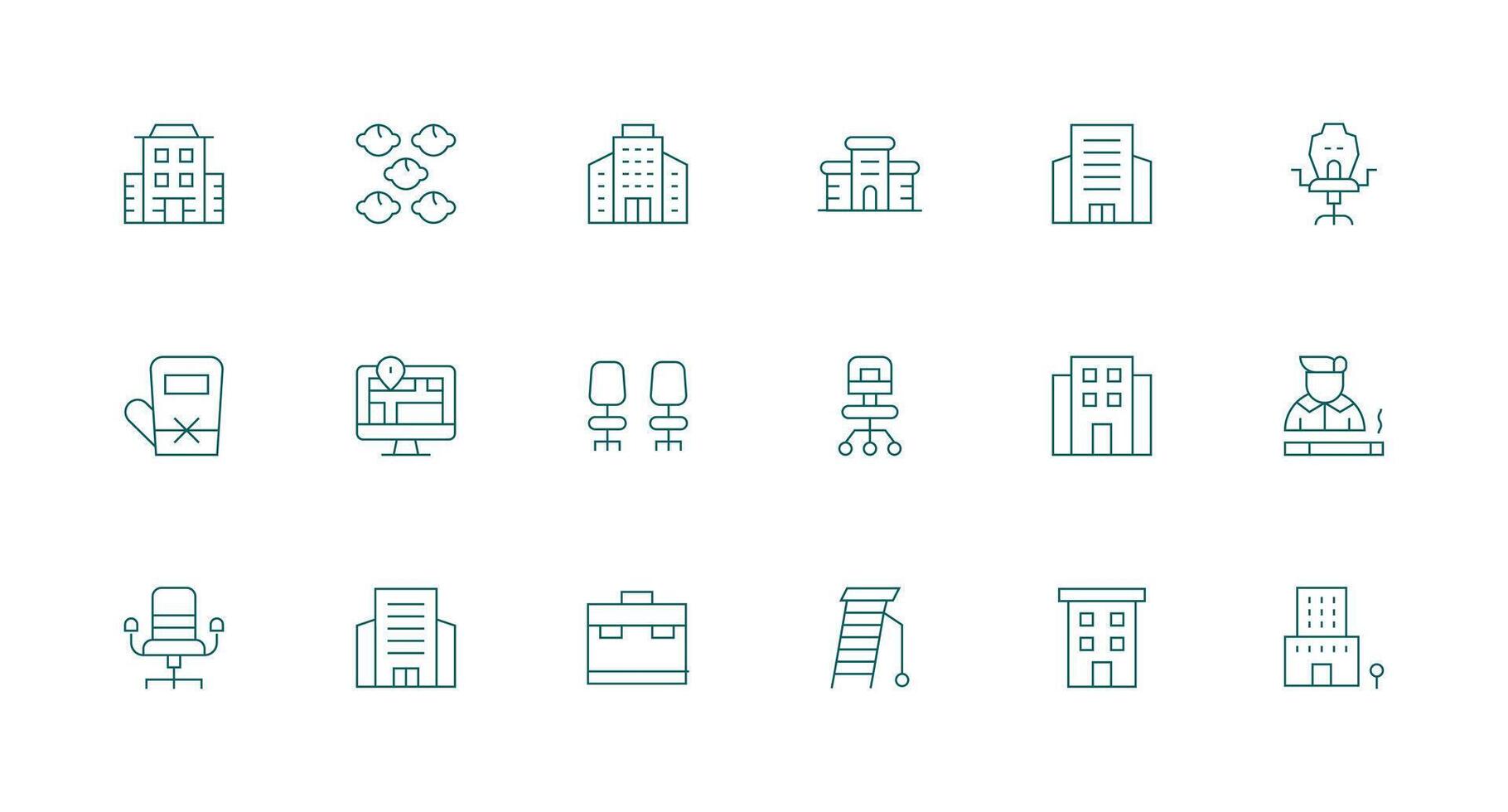 18 Icons for Workplace in Minimal Line Format Simple Icons for Interface and Wireframes vector