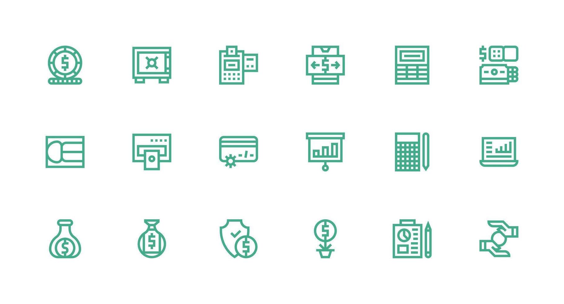 18 Strong Stroke Line Icons for Financial Graphics Clean Icon Collection for Web Use vector
