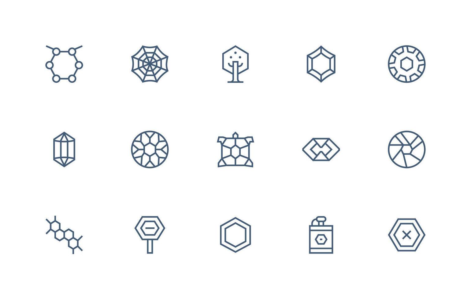 15 Regular Line Icons for Hexagon Graphics Customizable Icon Series for Mobile Screens vector