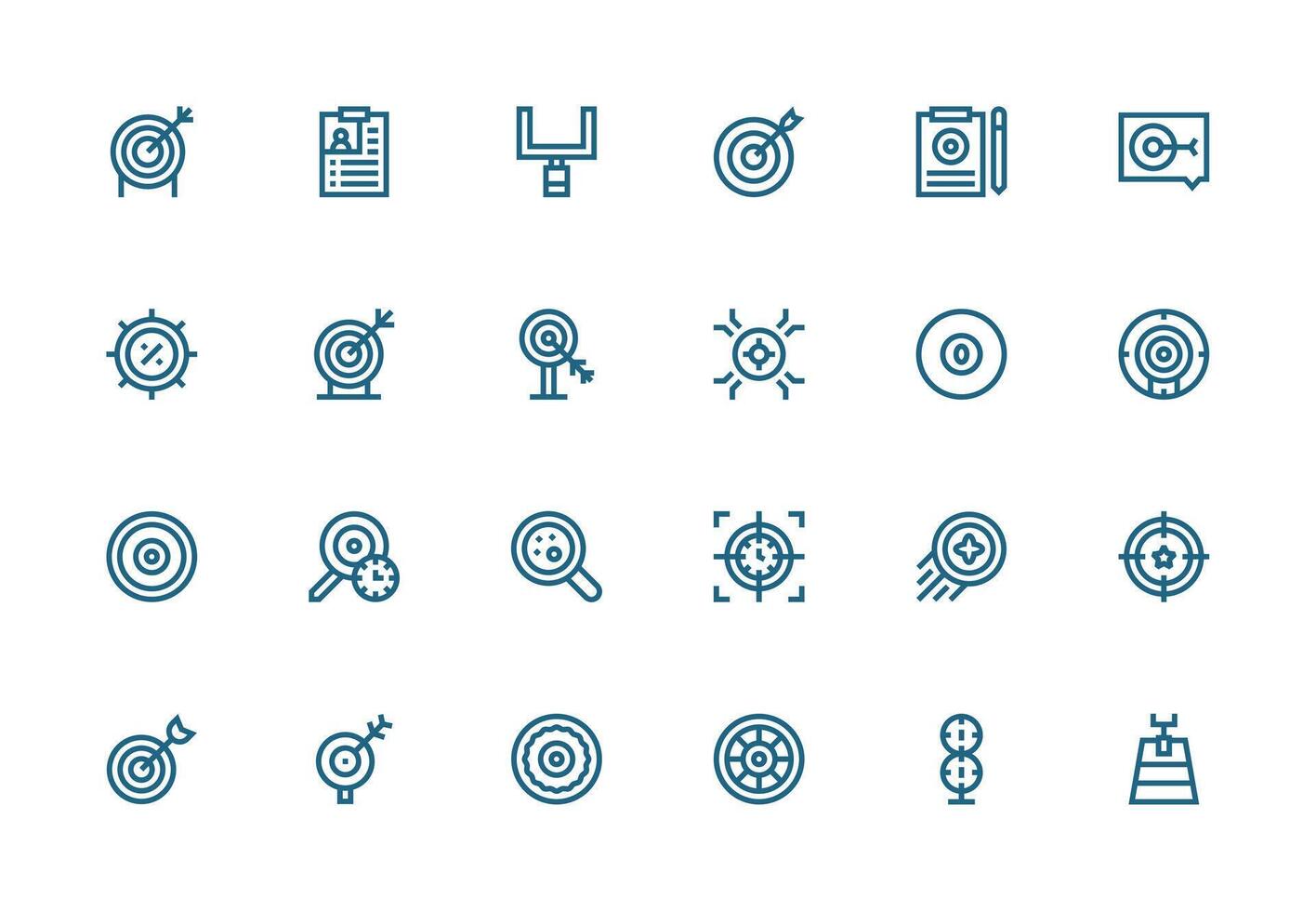 Objective Icon Set with 24 Thick Line Line Graphics Responsive Icon Set for Flexible Layouts Free Vector