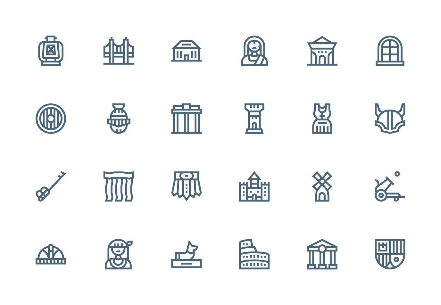 Historical Icon Set with 24 Thick Line Line Graphics Clean Icon Collection for Web Use vector