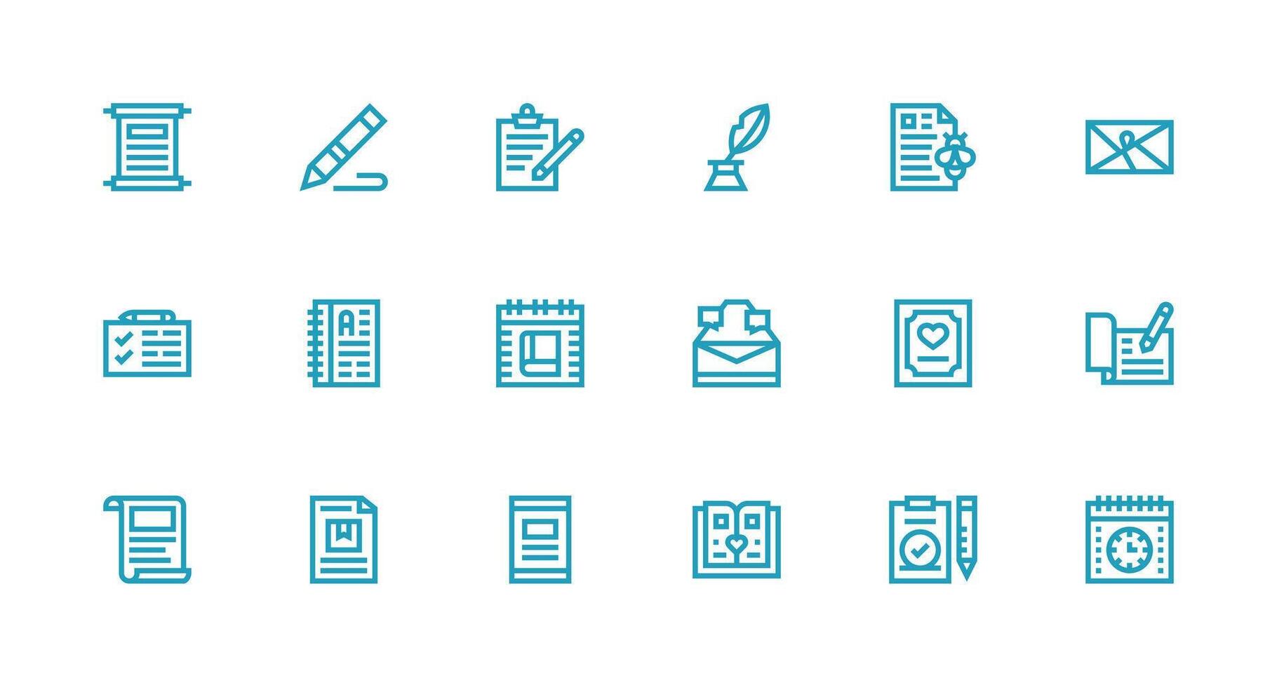 Note Design Icons featuring 18 in Strong Stroke Line Style Multi-Style Icons for Creative Projects Free Vector