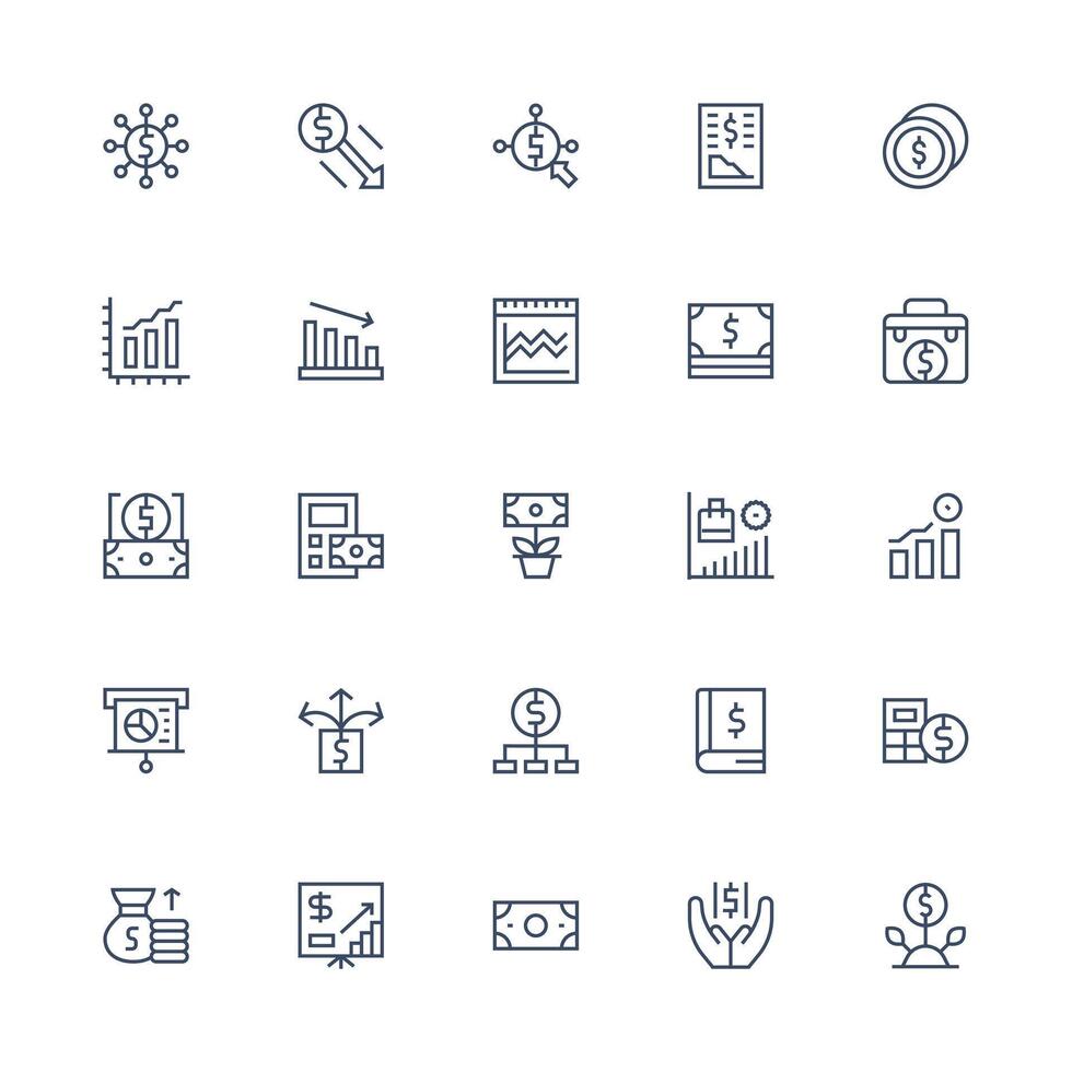 25 Icons for Revenue in Medium Stroke Outline Format Clear and Concise Icon Set Collection vector