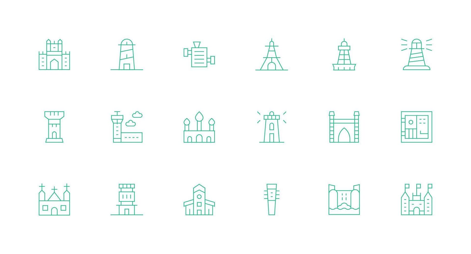 Tower featuring 18 Icons in Minimal Line Design Scalable Icons for All Themes Free Vector