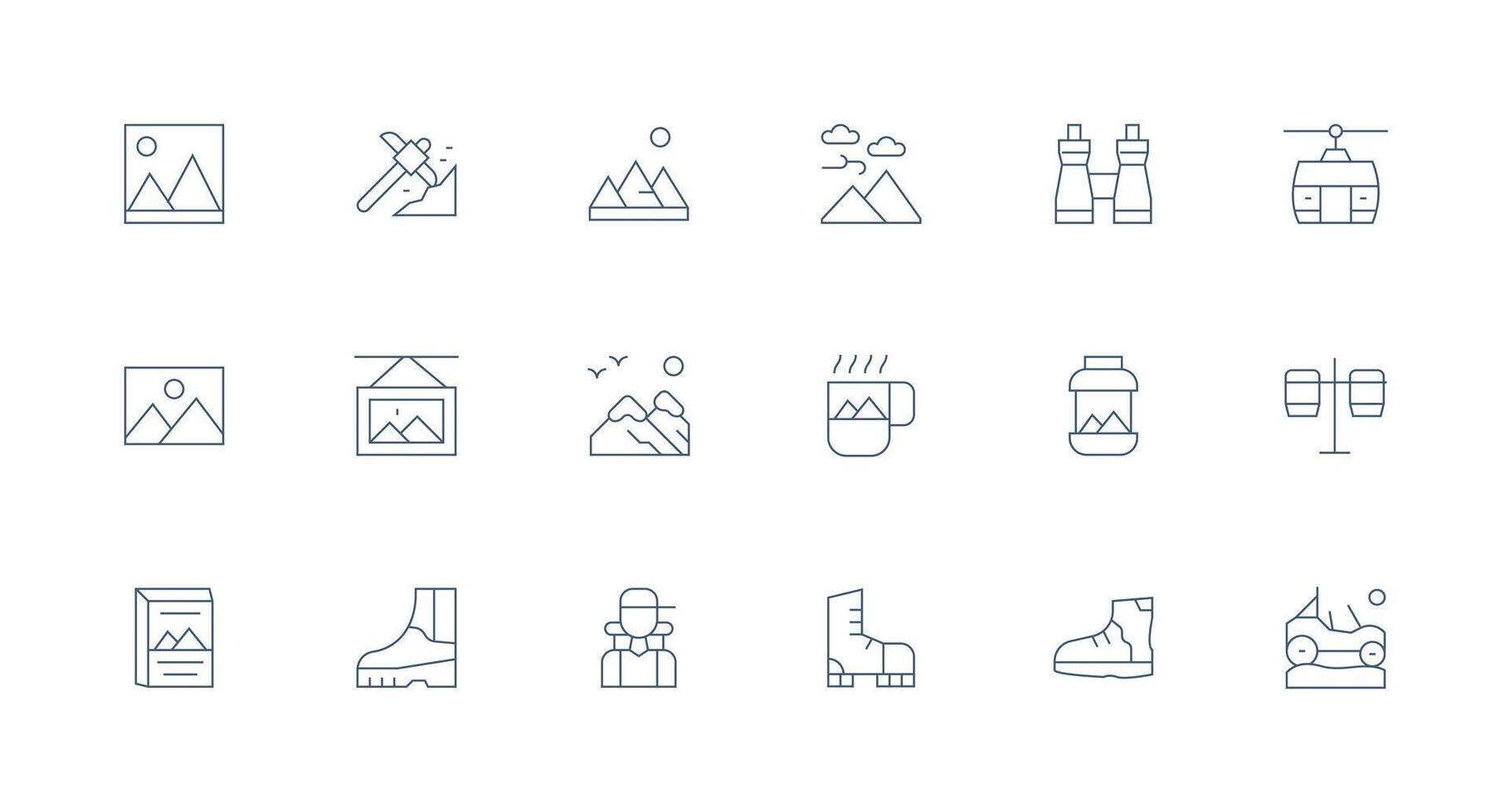Minimal Line Style Mountain Icons with 18 Vectors Well-Structured Icons for Creative Use