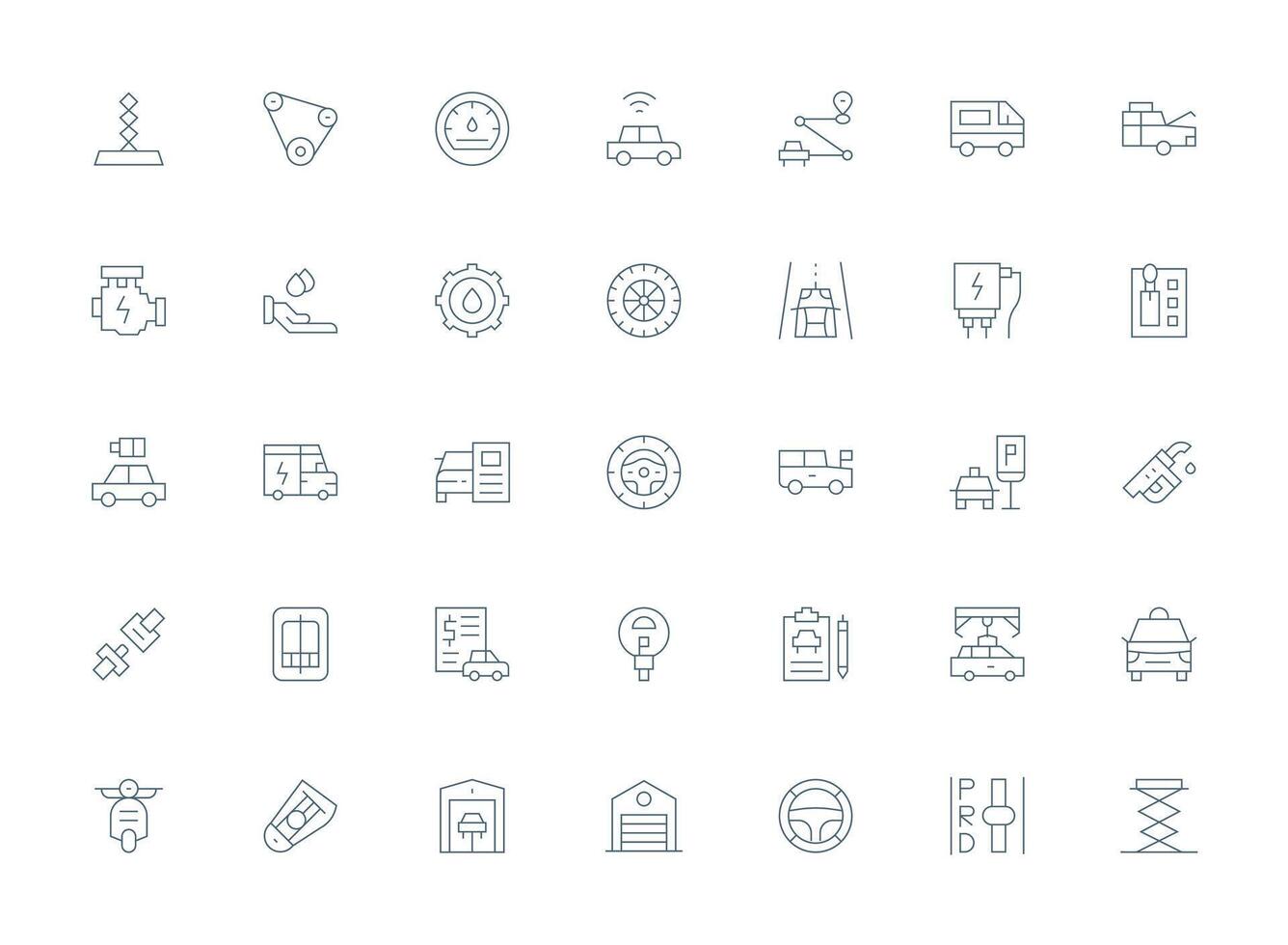 35 Light Line Vectors for Automobile Theme UI and UX Focused Icon Collection