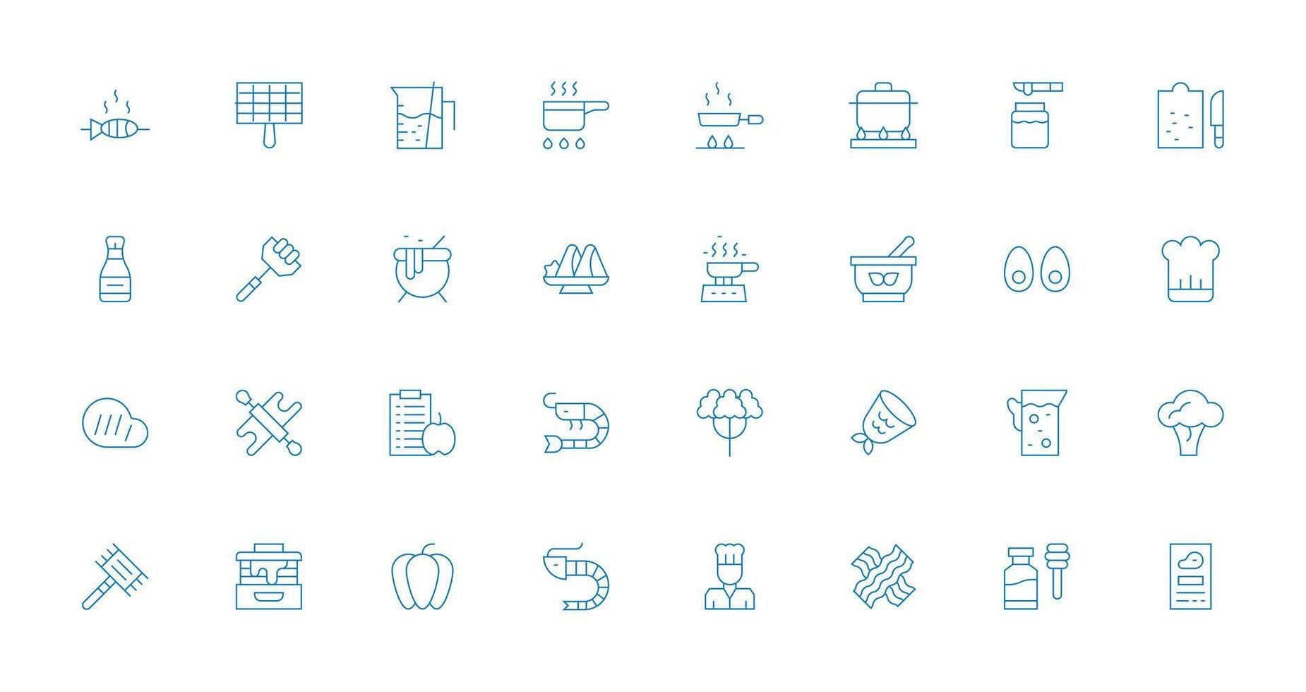 Thin Line Icons from Recipe Set with 32 Vectors Compact Icon Set Free Vector