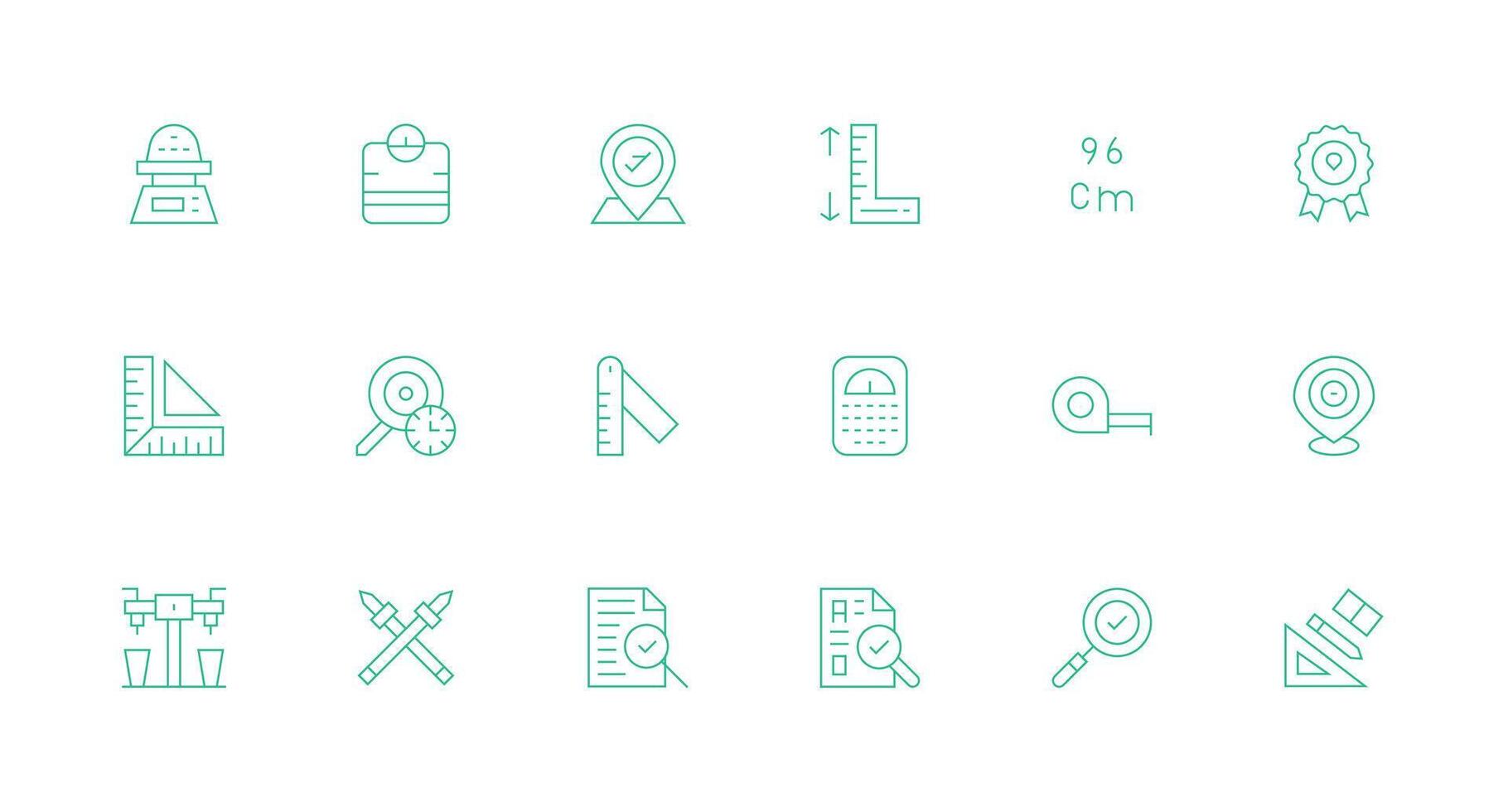 Accurate Design Icons featuring 18 in Minimal Line Style Pixel Perfect Icon Set vector