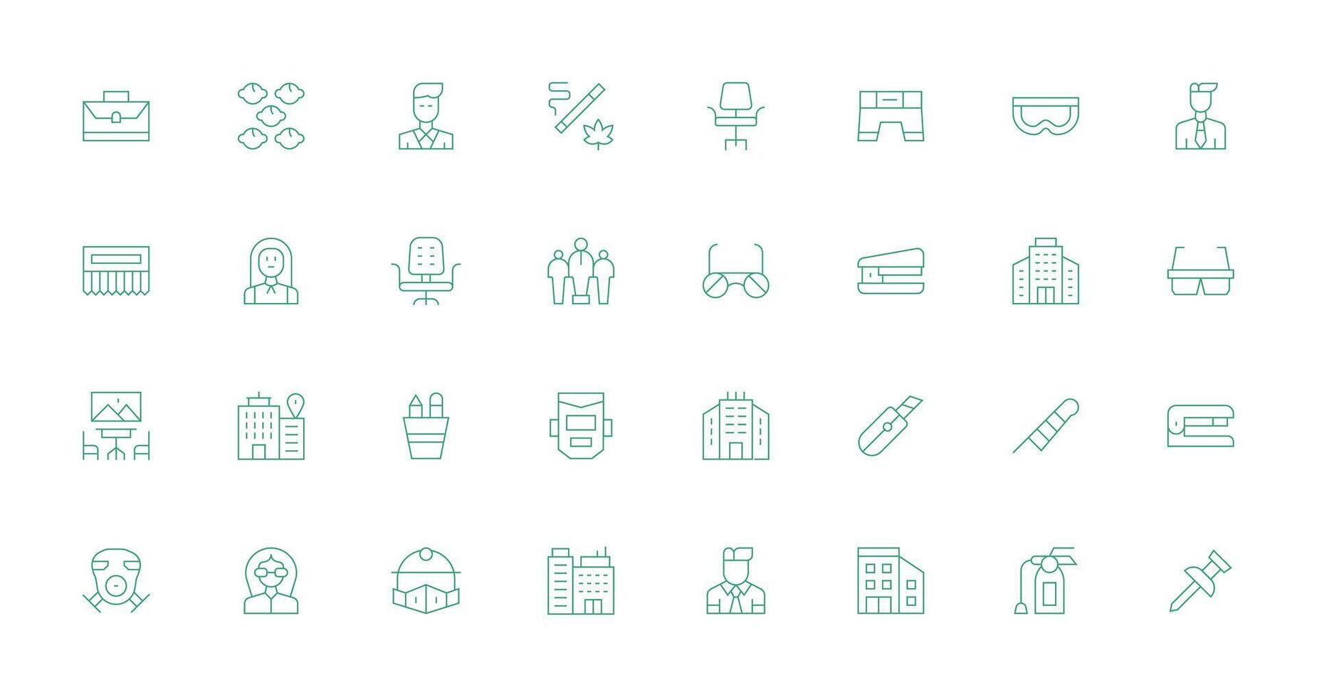 32 Thin Line Style Icons from Workplace Collection Clean Icon Collection for Web Use vector