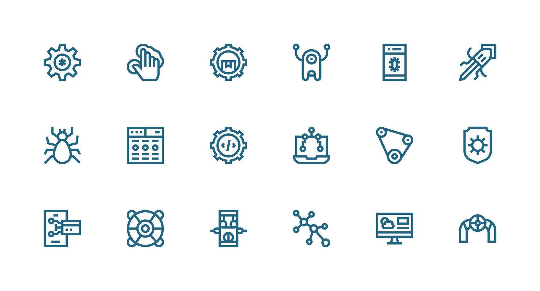 System Icon Set with 18 Strong Stroke Line Graphics Complete Icon Set for Mobile Apps Free Vector