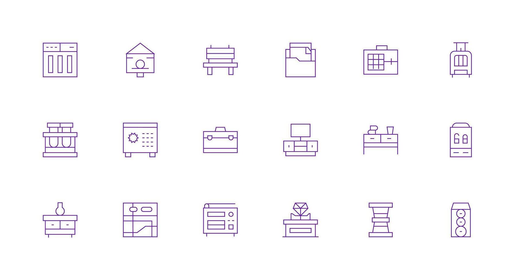Cabinet Set with 18 Minimal Line Icons Multi-Purpose Icon Set Free Vector