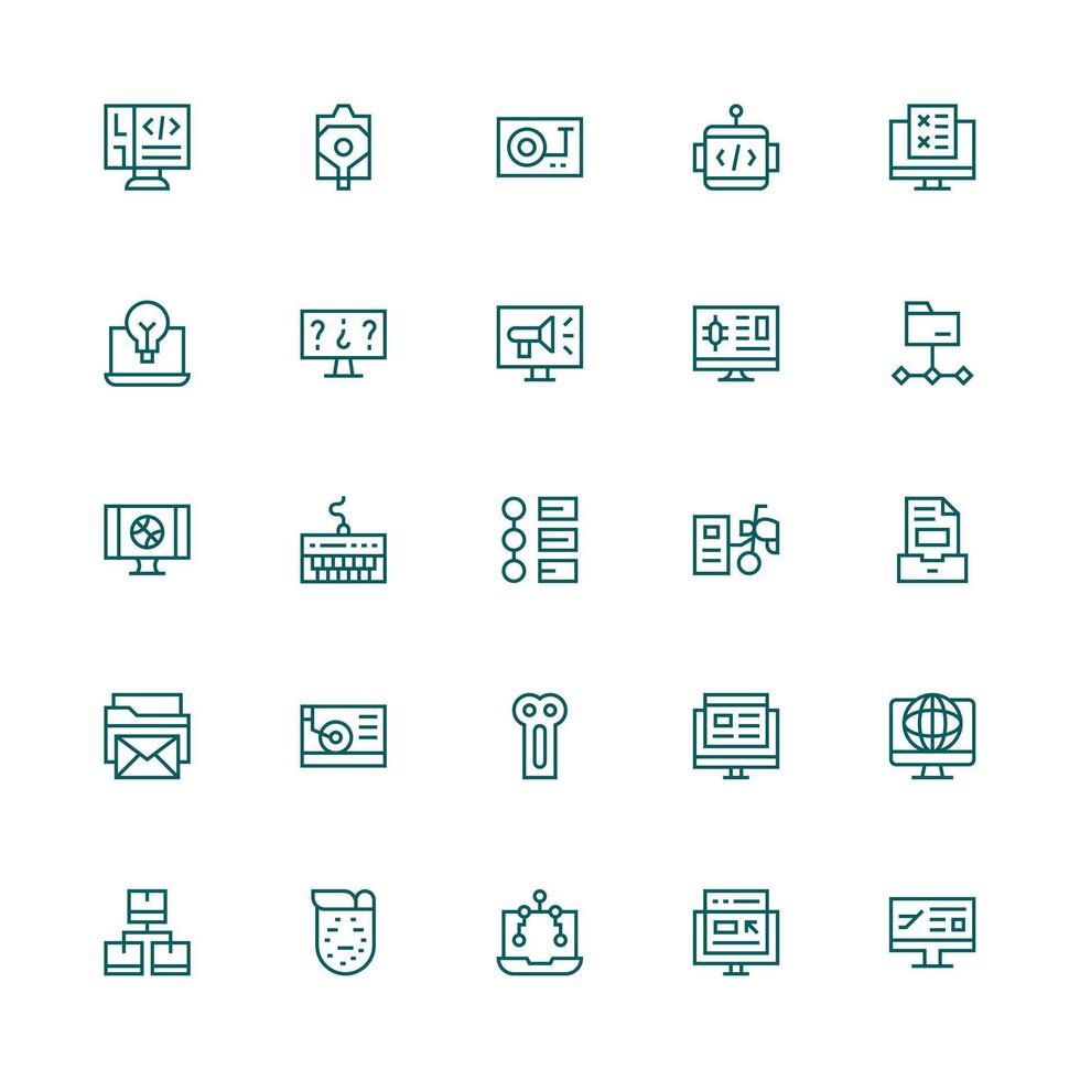 25 Medium Stroke Outline Icons for Computer Graphics Icon Pack for UI Free Vector