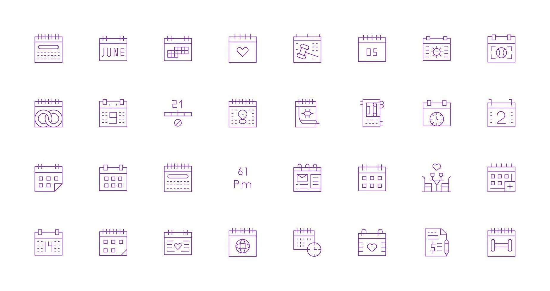 32 Date Icons in Thin Line Aesthetic Customizable Icon Series for Mobile Screens vector