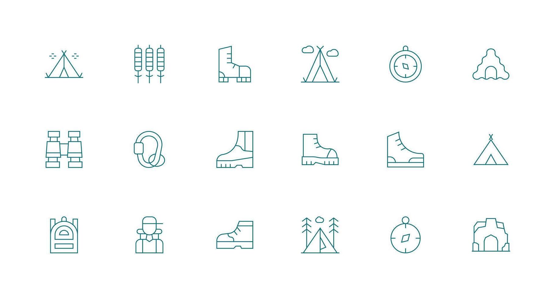 Trekking Icon Set with 18 Minimal Line Graphics Clean Icon Set Icon Pack for UI Projects vector