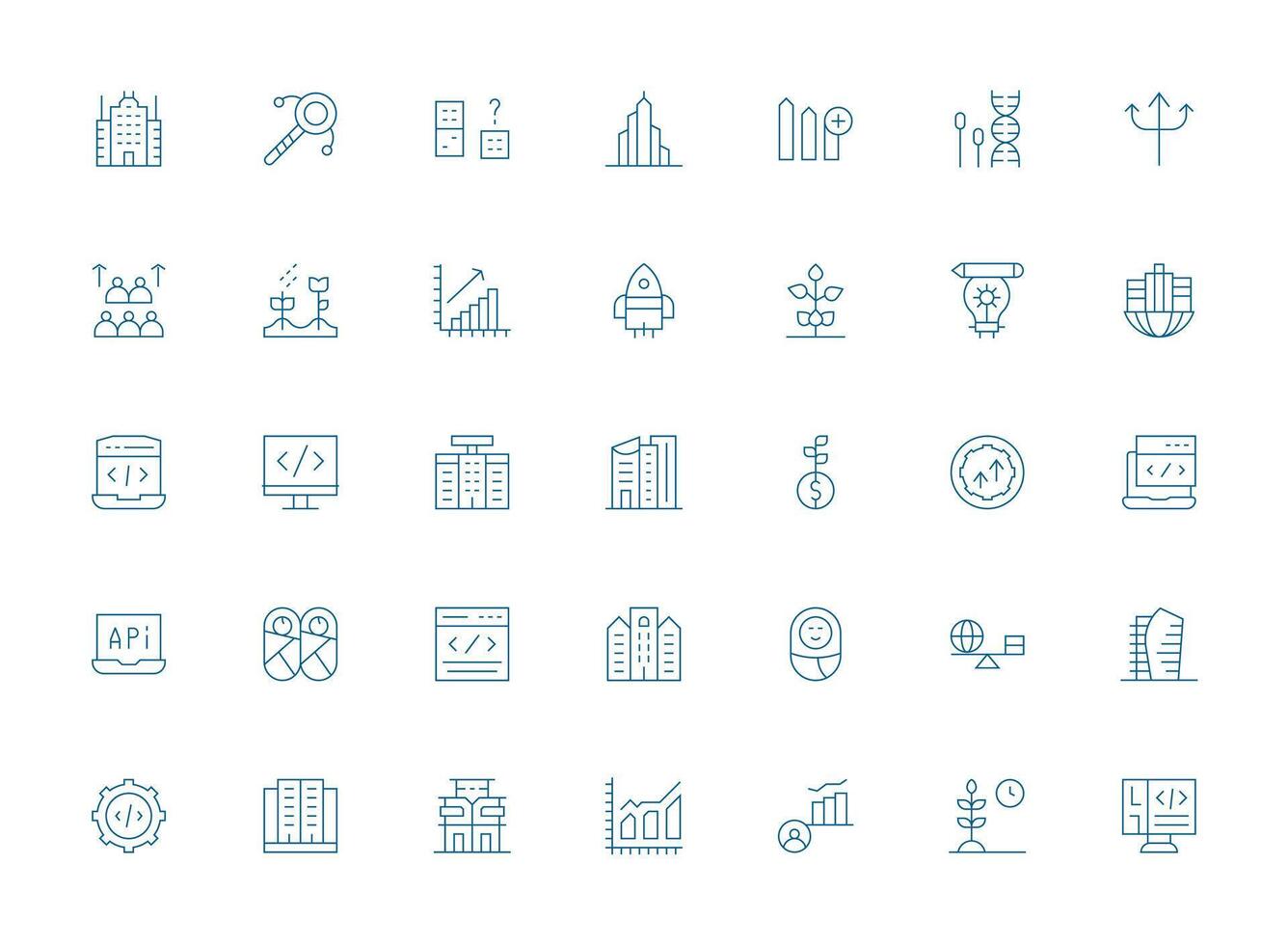 35 Light Line Style Icons from Development Collection Minimal Icon Set for Interface Projects vector