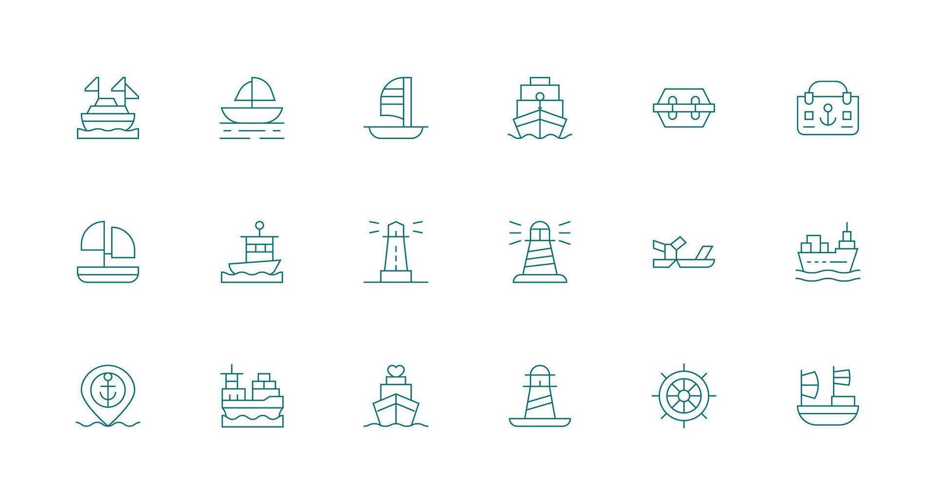 Harbor Visual Pack containing 18 Minimal Line Icons High-Resolution Icons for Any Platform Free Vector