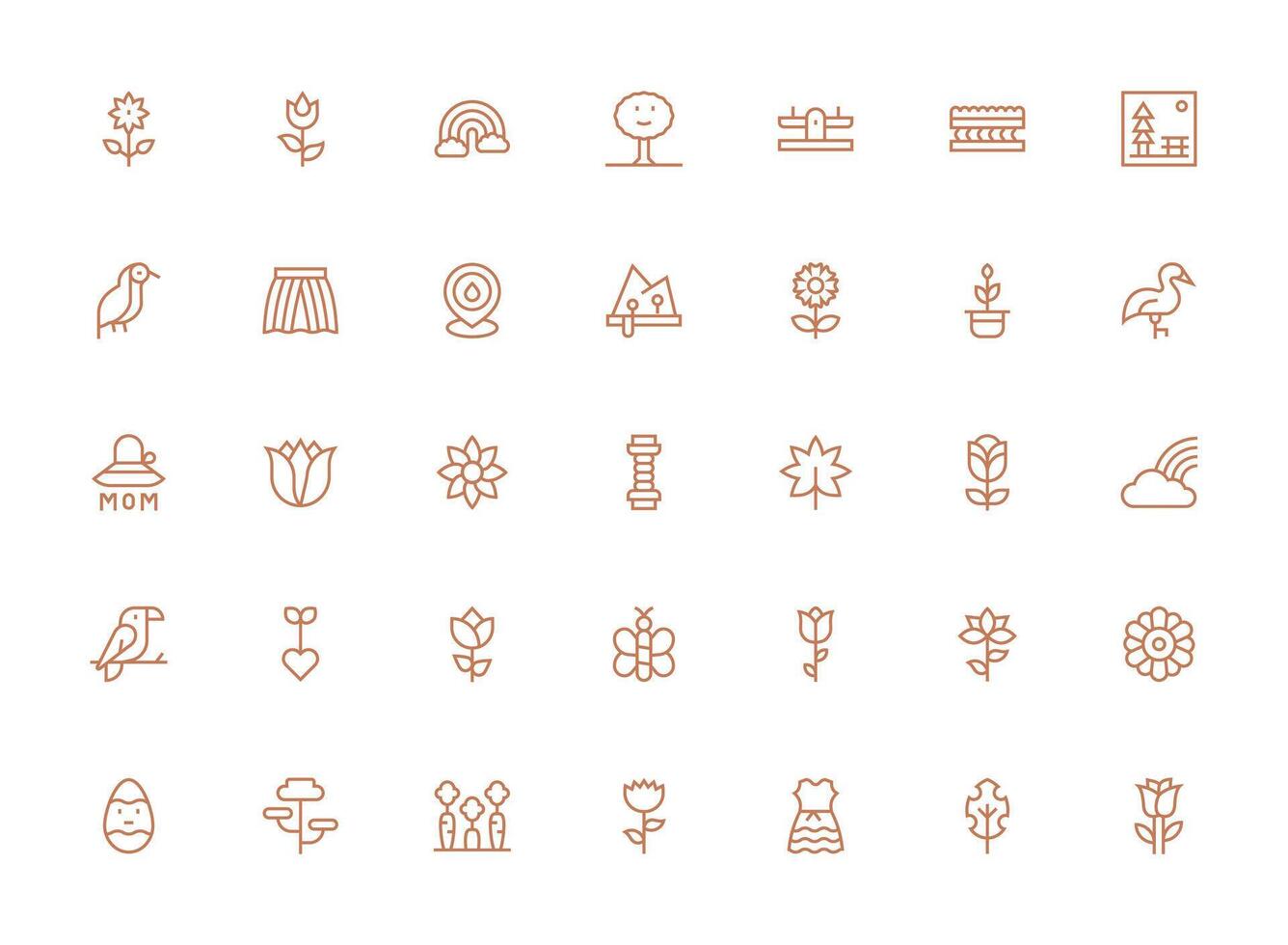 Spring Visual Pack containing 35 Regular Clean Line Icons Balanced Icon Set for Functional Design vector