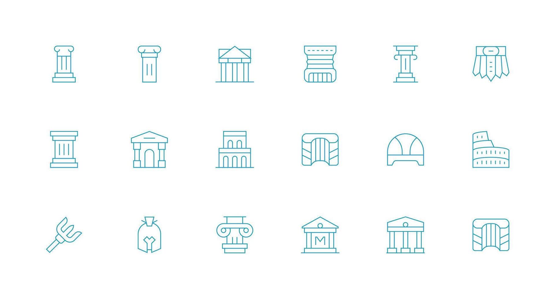 Minimal Line Icons from Roman Set with 18 Vectors Simple Icons for Interface and Wireframes Free Vector
