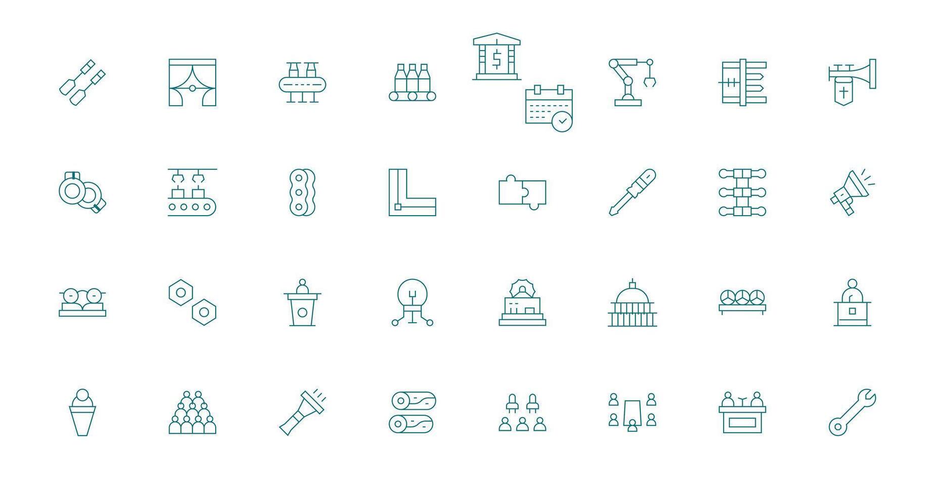 Assembly featuring 32 Icons in Thin Line Design Neutral Style Icons for Any Project vector