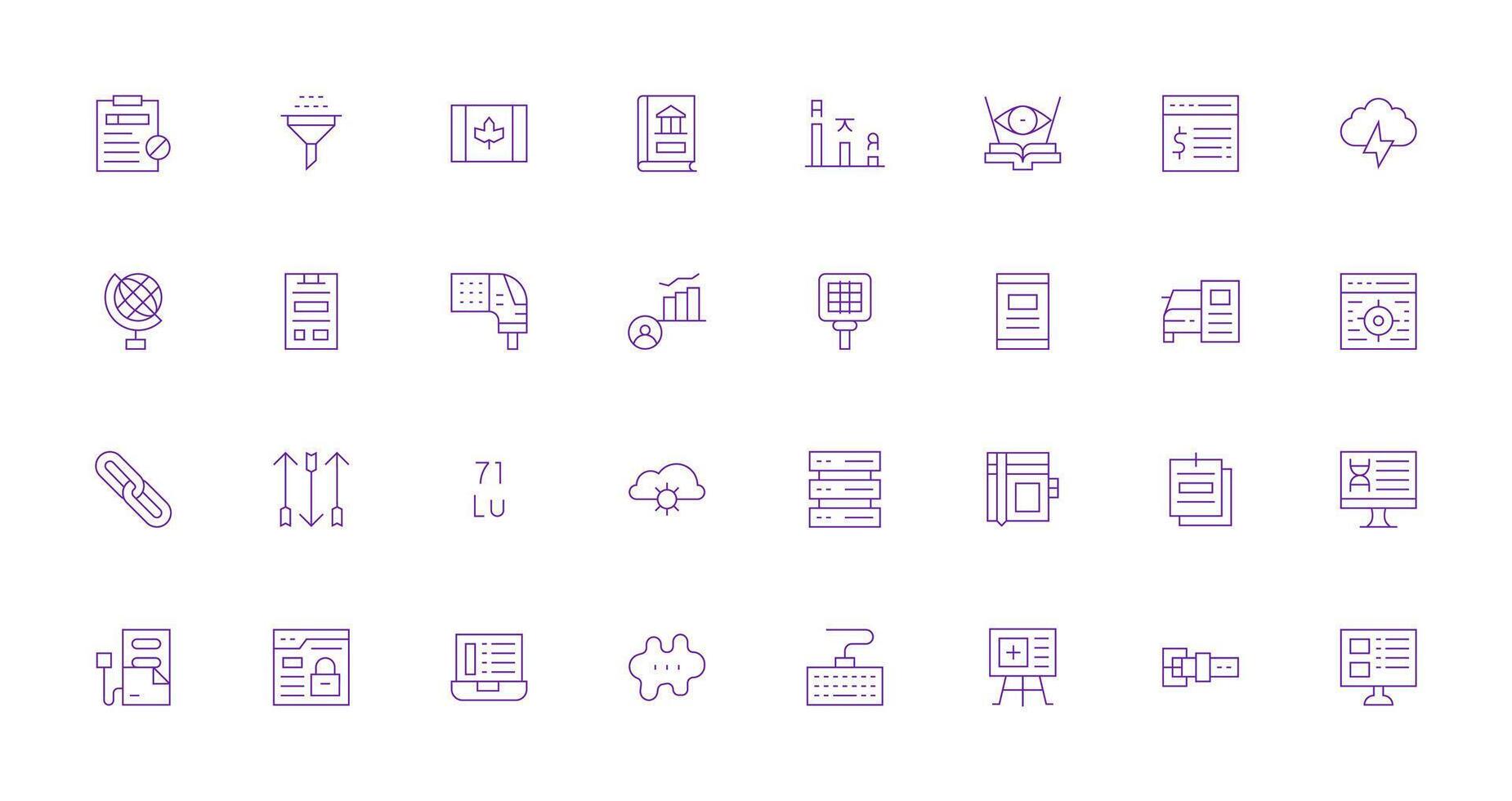 32 Icons for Data in Thin Line Format Icon Set for Web vector