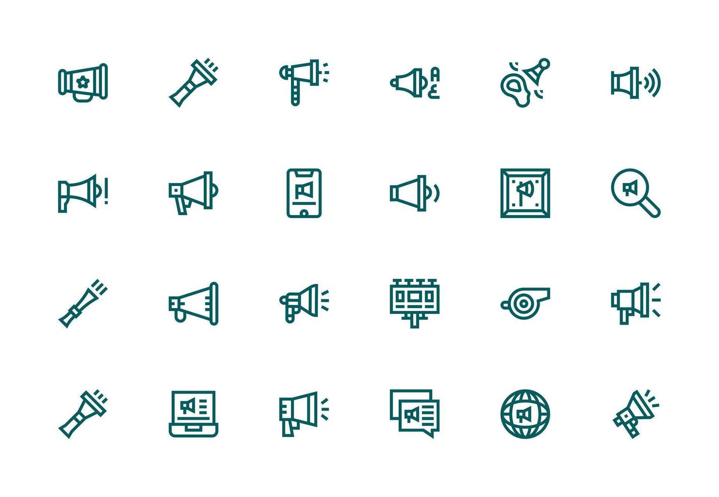 Megaphone Design Icons featuring 24 in Thick Line Line Style Neutral Style Icons for Any Project vector