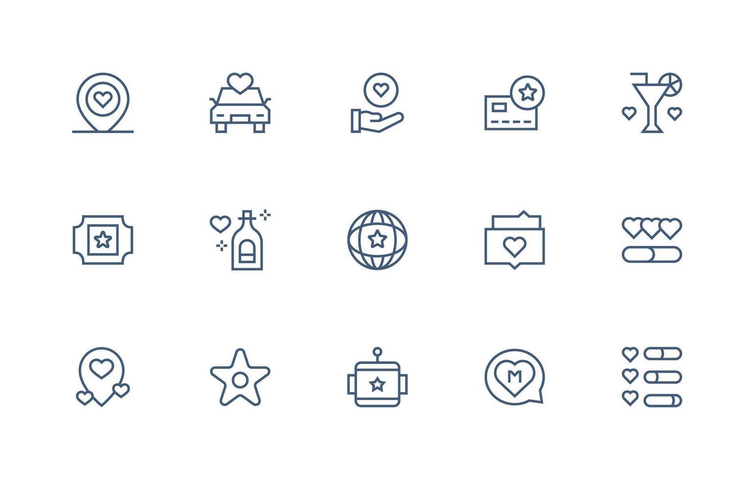 Preferred Icon Set with 15 Regular Line Graphics Compact Icon Set vector