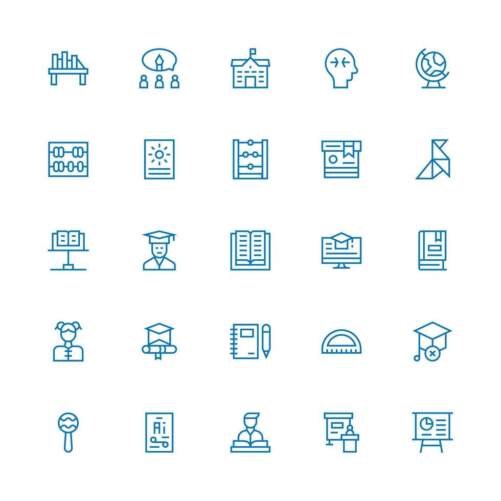Learning Design Icons featuring 25 in Medium Stroke Outline Style Reusable Icon Set Free Vector