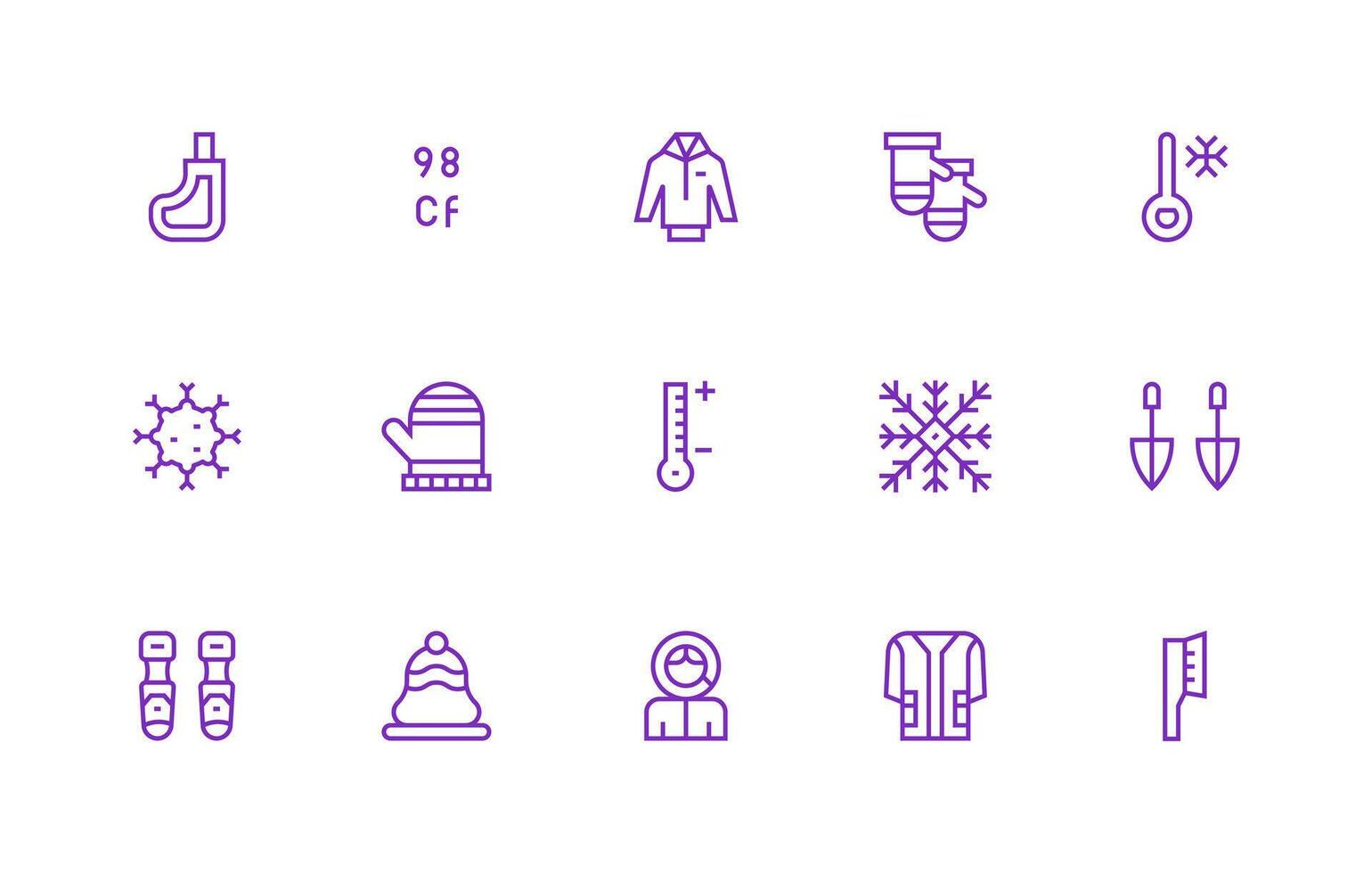 Cold Weather Set with 15 Regular Line Icons Minimal Icon Set for Interface Projects vector