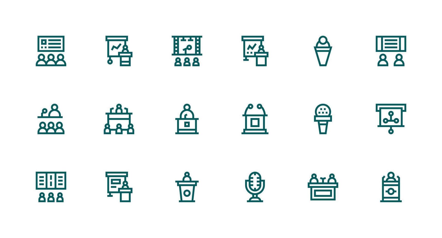 18 Lecture Icons in Strong Stroke Line Aesthetic Scalable Icons for All Themes Free Vector
