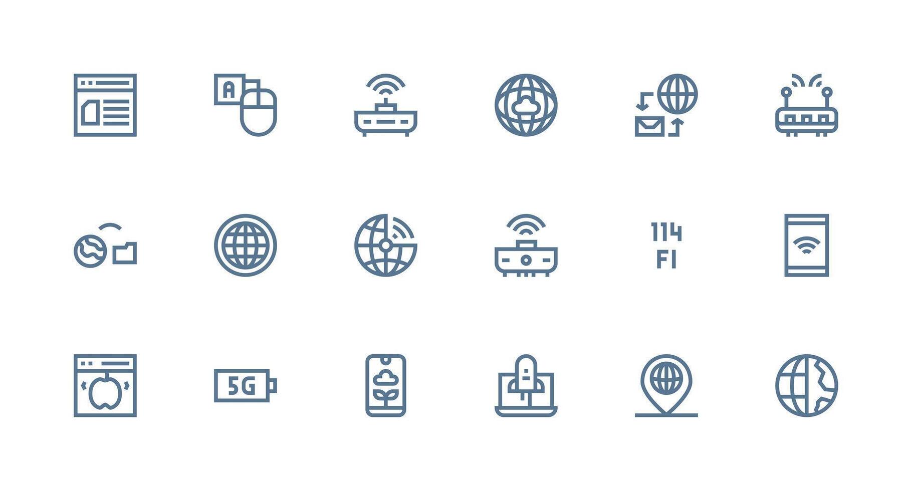 Strong Stroke Line Icons from Internet Set with 18 Vectors Interface Icon Collection Free Vector