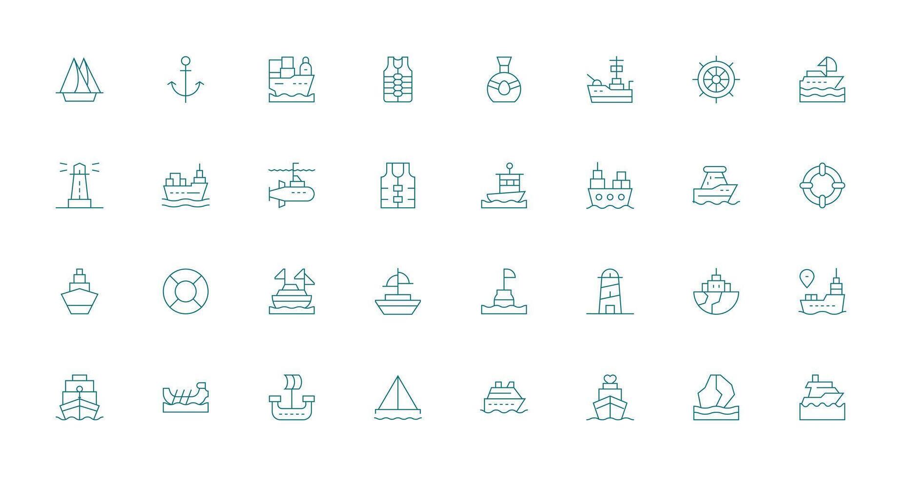 Maritime Visual Pack containing 32 Thin Line Icons Balanced Icon Set for Functional Design Free Vector