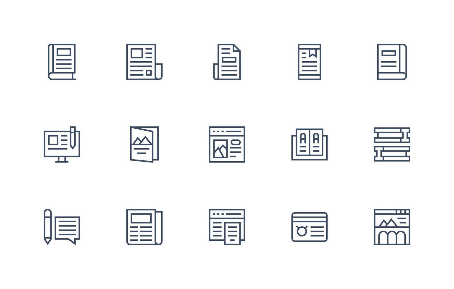 Article Icon Set with 15 Regular Line Graphics High-Quality Icon Pack vector