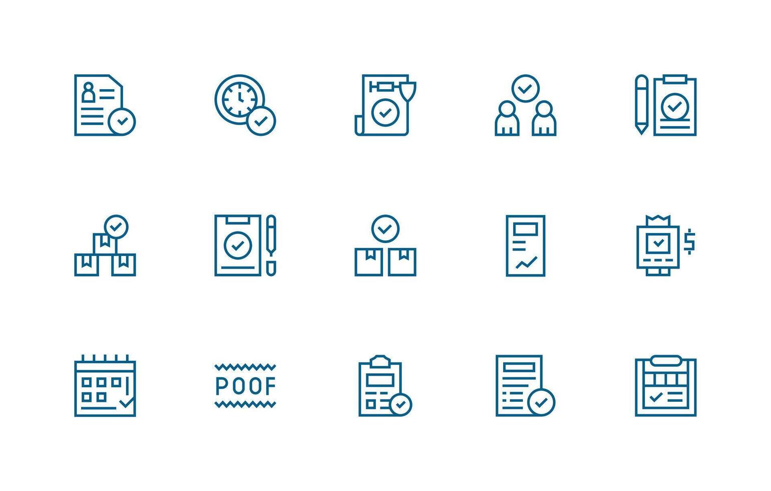 Completed Design Icons featuring 15 in Regular Line Style Neatly Designed Icons for Web Platforms vector