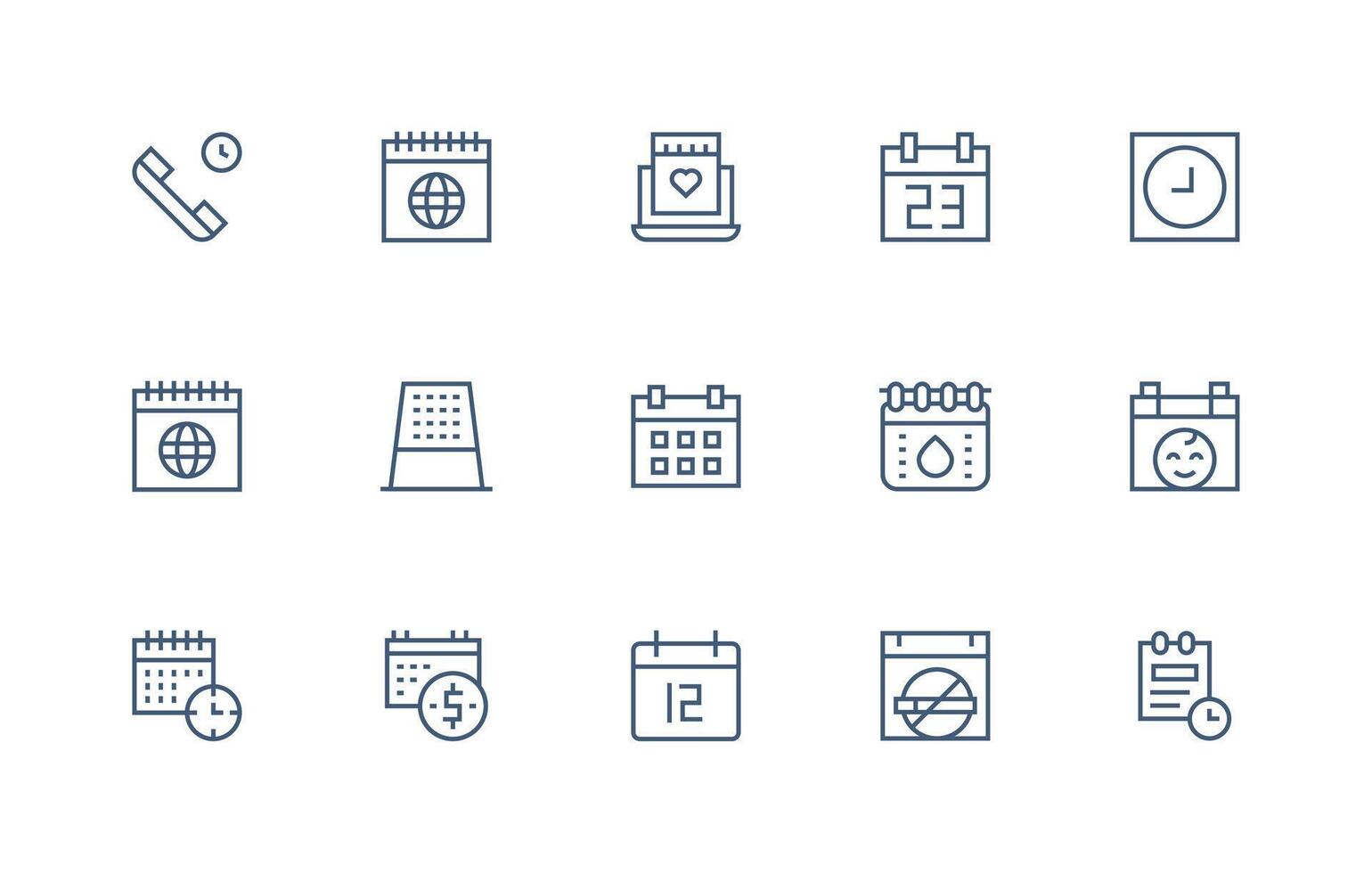 Calendar featuring 15 Icons in Regular Line Design Simplified Icon Pack for Visual Tools vector