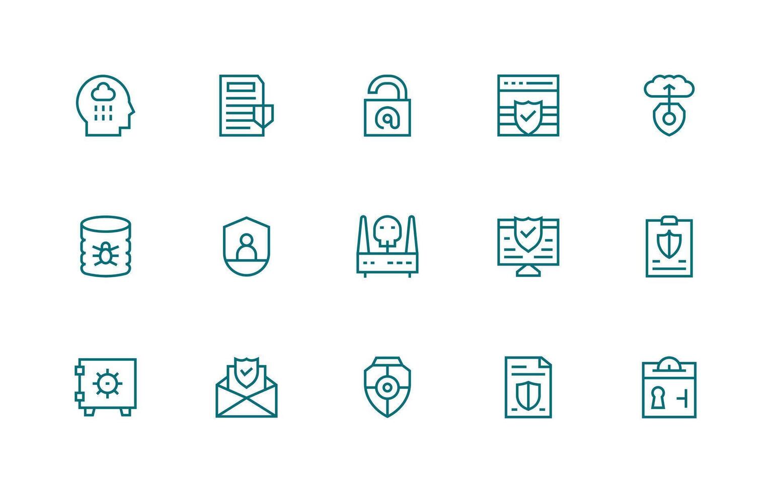 Regular Line Style Digital Security Icons with 15 Vectors Functional Icon Series