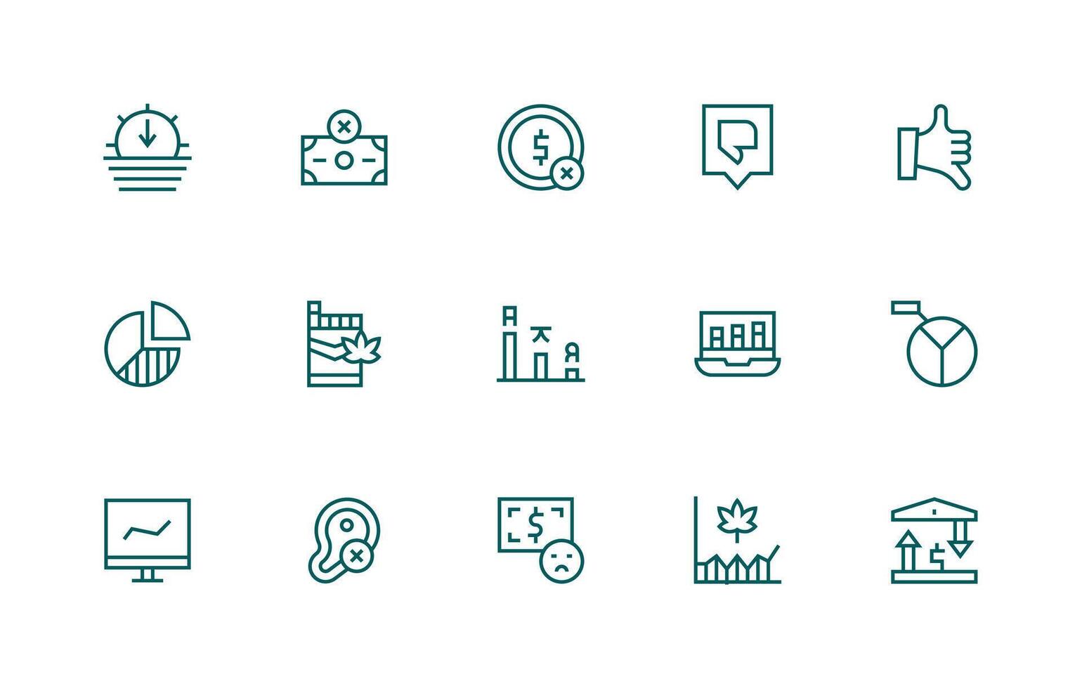 Decline Icon Set with 15 Regular Line Graphics Design Ready Icon Set for Teams vector