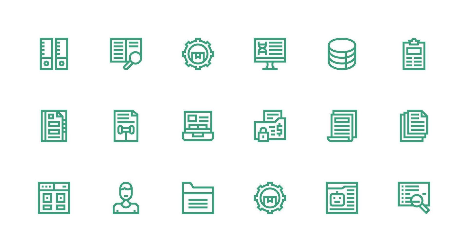 Strong Stroke Line Icons from Records Set with 18 Vectors Detailed Icon Collection for Design Systems Free Vector