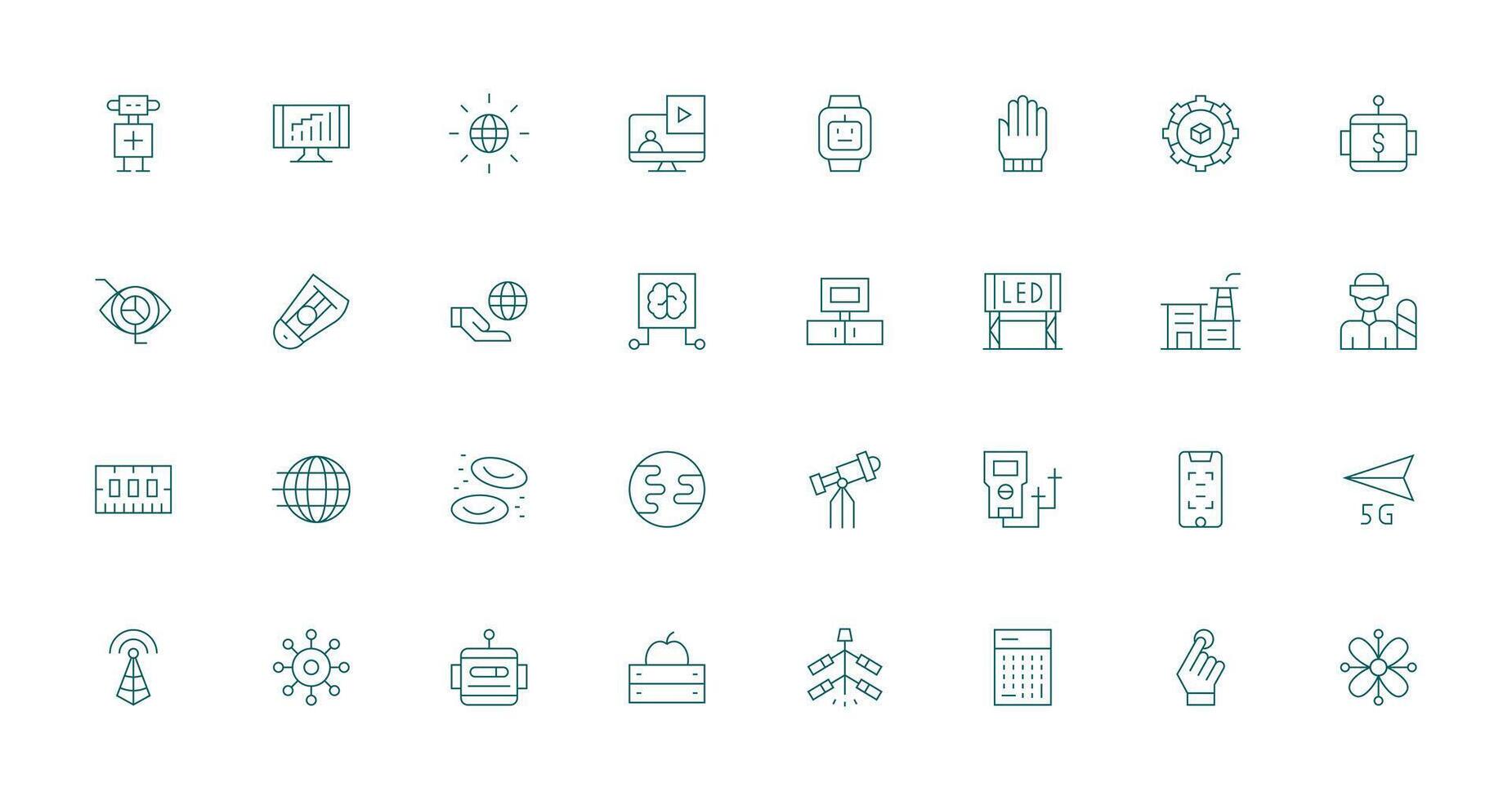 Thin Line Icons from Technology Set with 32 Vectors Quick Access Icons for UI Development Free Vector