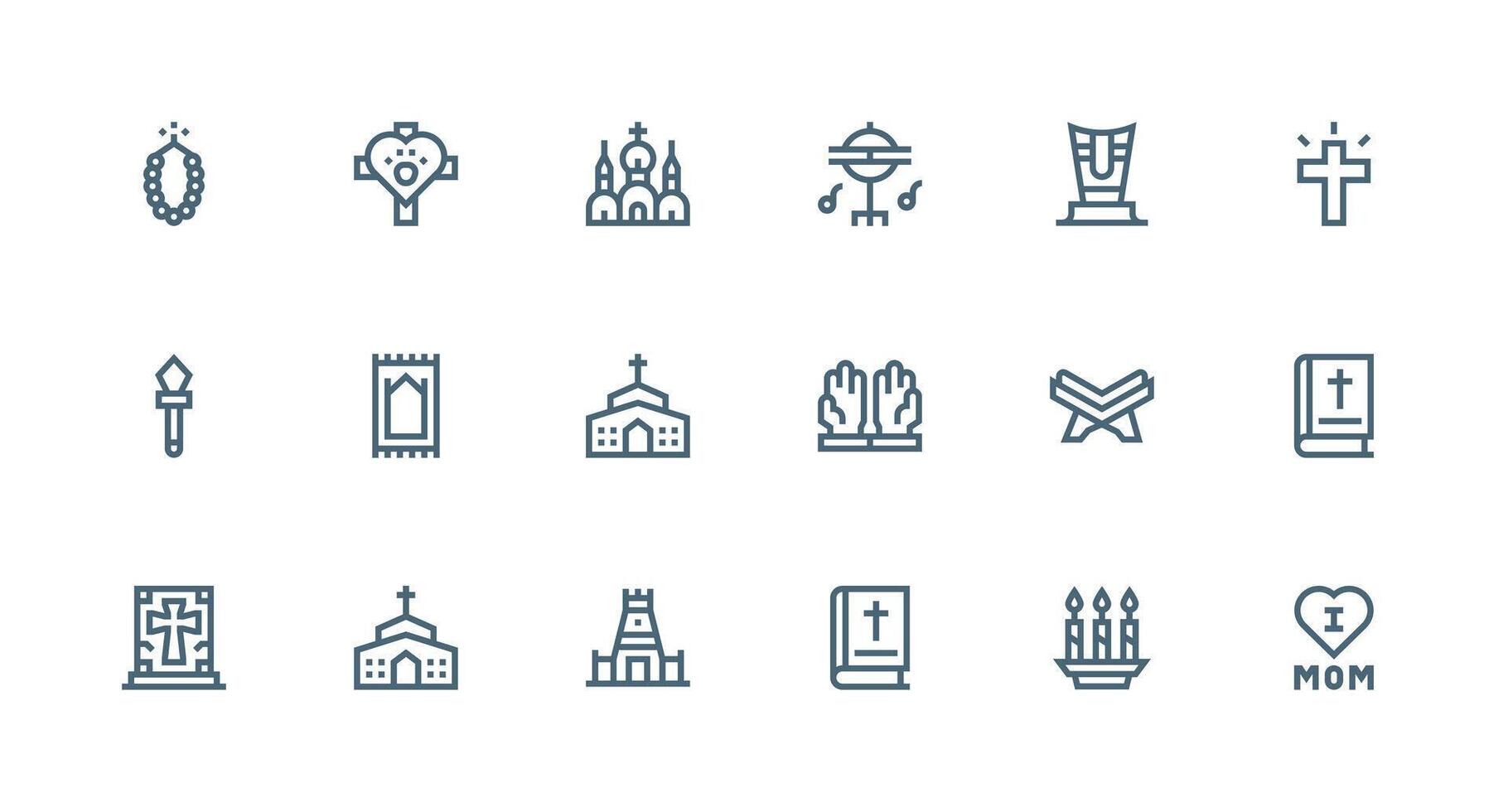 Devotion Design Icons featuring 18 in Strong Stroke Line Style Flat Icon Set vector