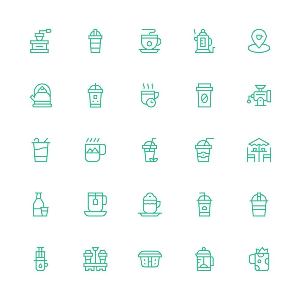 25 Medium Stroke Outline Icons for Coffee Graphics Flexible Icon System for Web Interfaces vector
