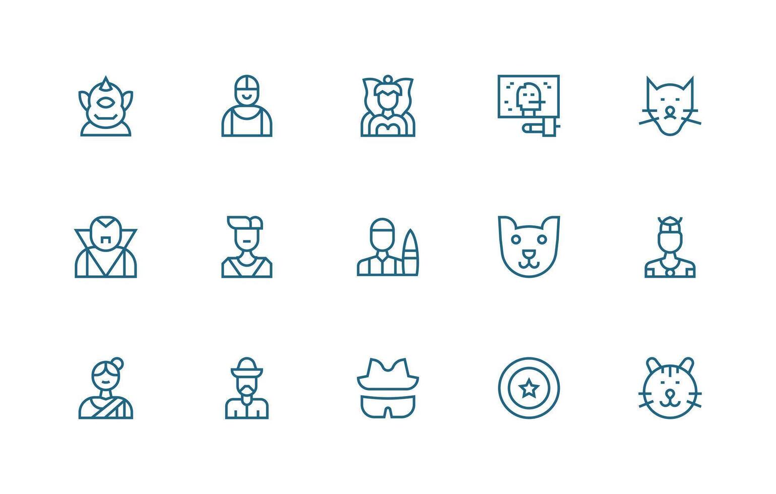 Regular Line Icons from Character Set with 15 Vectors Web Icon Collection Free Vector