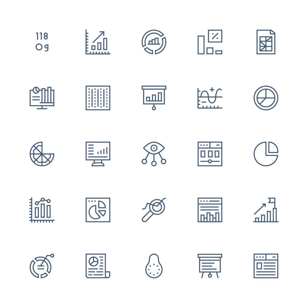 Medium Stroke Outline Style Data Visualization Icons with 25 Vectors Multi-Purpose Icon Pack for Templates