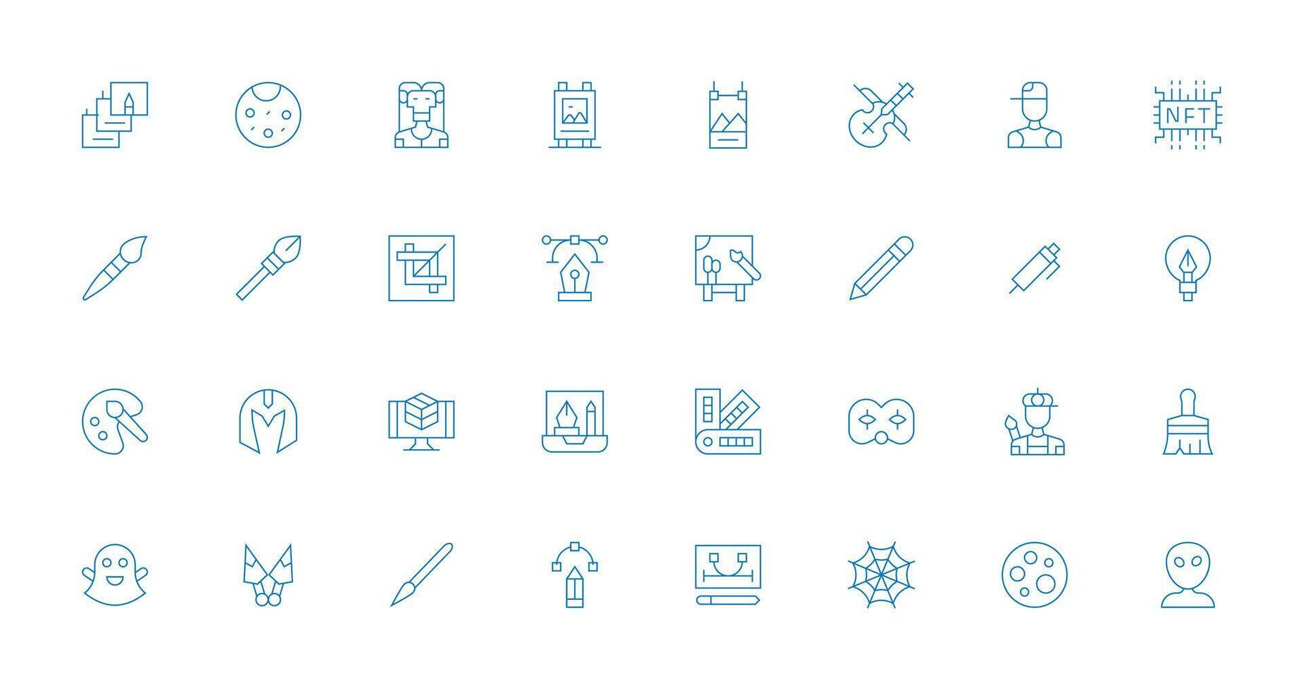 Digital Art Design Icons featuring 32 in Thin Line Style Minimal Icon Set for Interface Projects vector