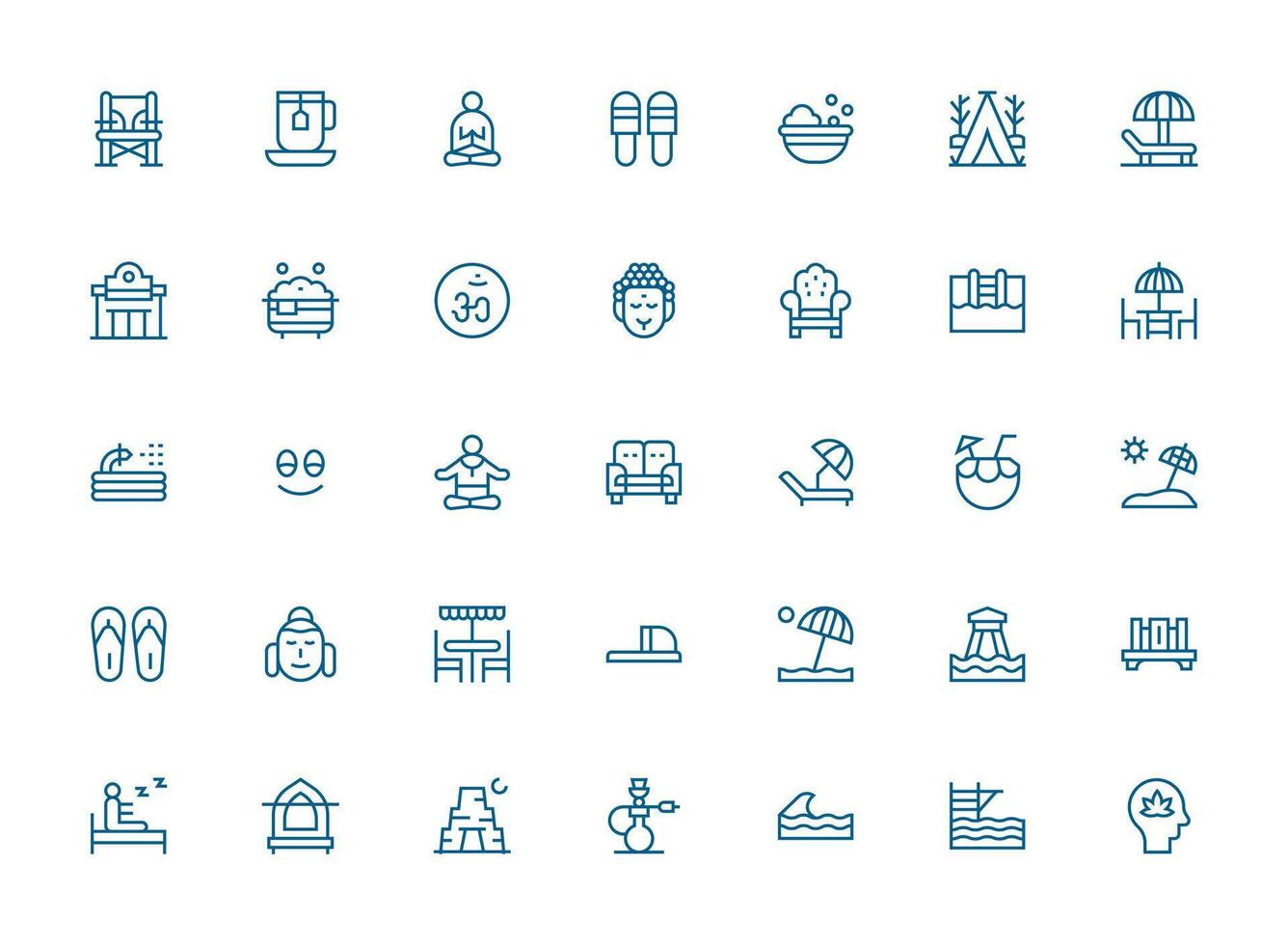 Regular Clean Line Icons from Relaxation Set with 35 Vectors All Device Compatible Icon Set Free Vector