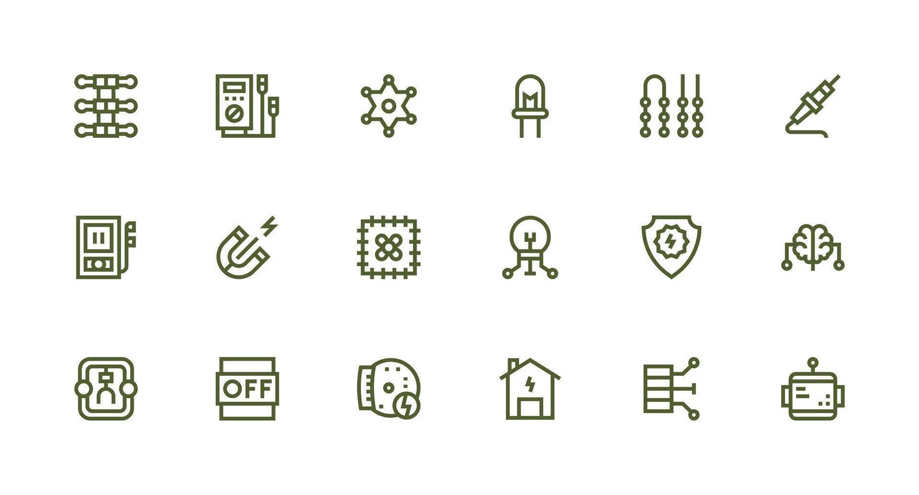 18 Strong Stroke Line Icons for Circuit Graphics Icon Set for Apps Free Vector