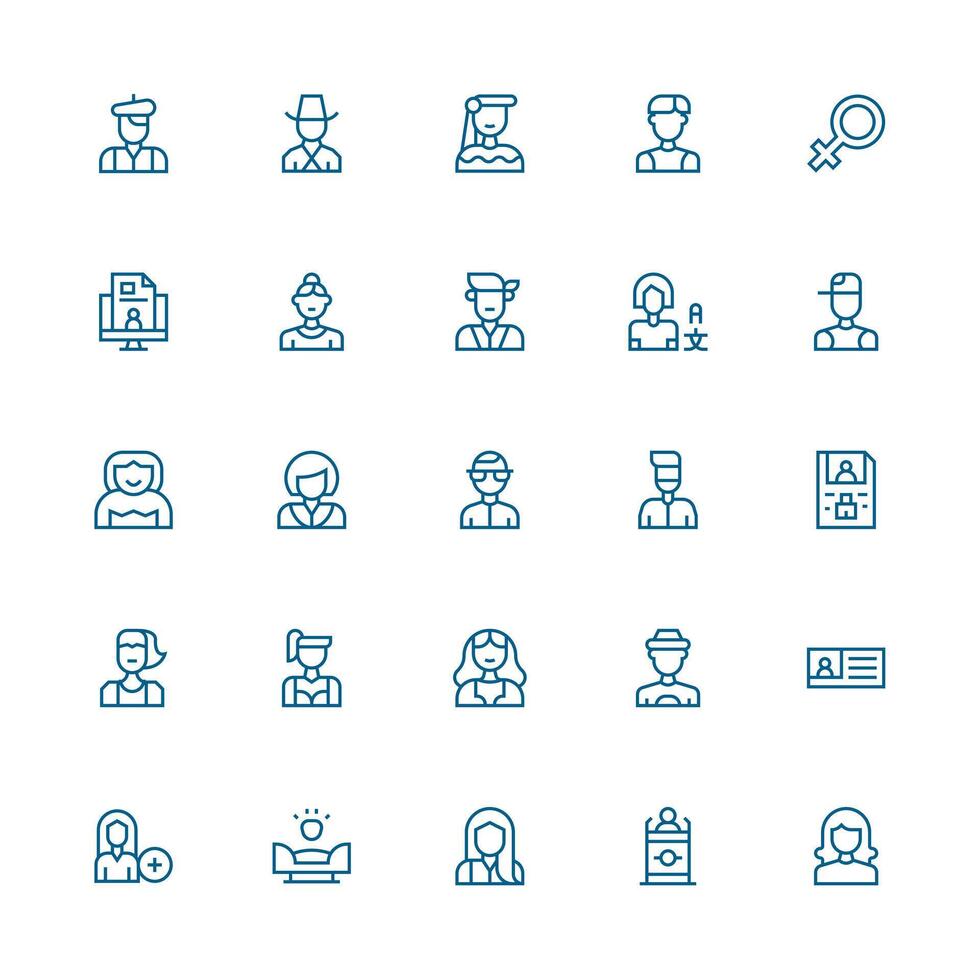 25 Medium Stroke Outline Icons for Person Graphics Balanced Icon Set for Functional Design vector