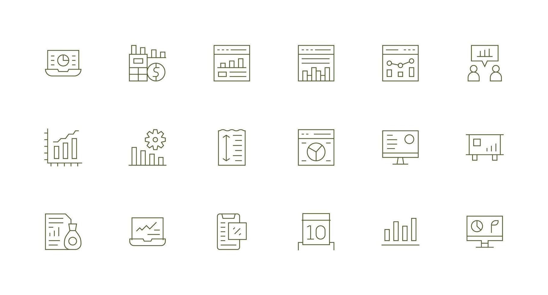 Metrics Icon Set with 18 Minimal Line Graphics Organized Glyph Icons for Fast Design Free Vector