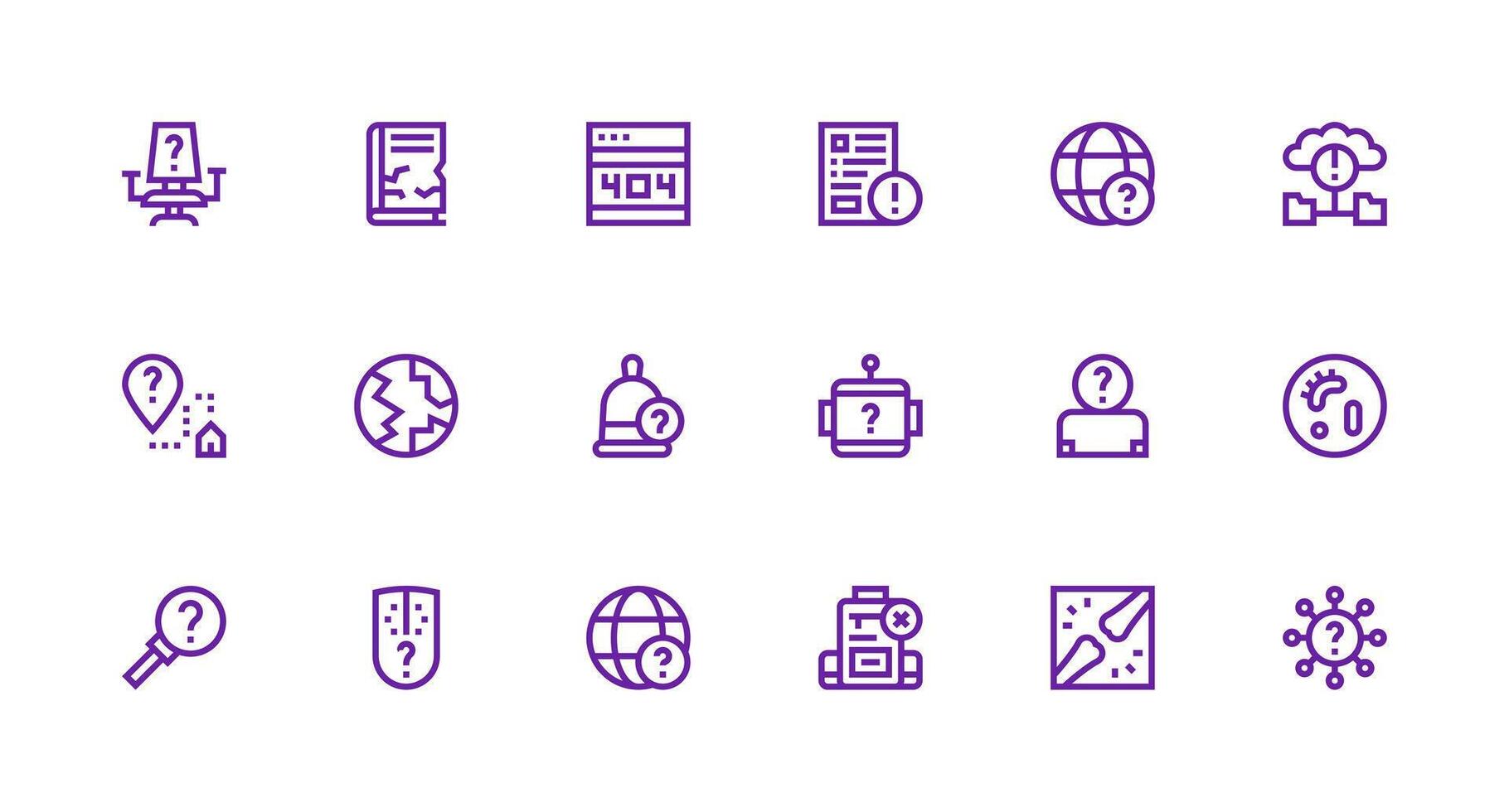 Missing Icon Set with 18 Strong Stroke Line Graphics Modern Icon Set Free Vector