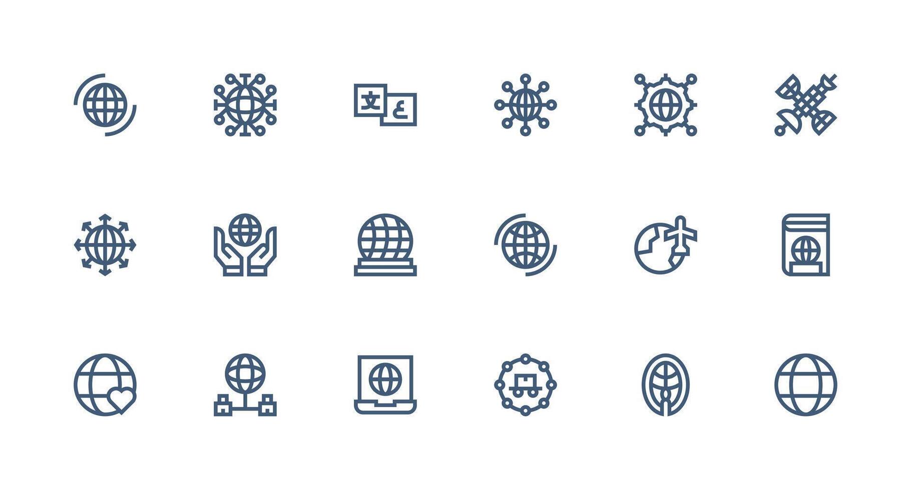 Globalization Icon Set with 18 Strong Stroke Line Graphics Versatile Icon Collection for Designers vector